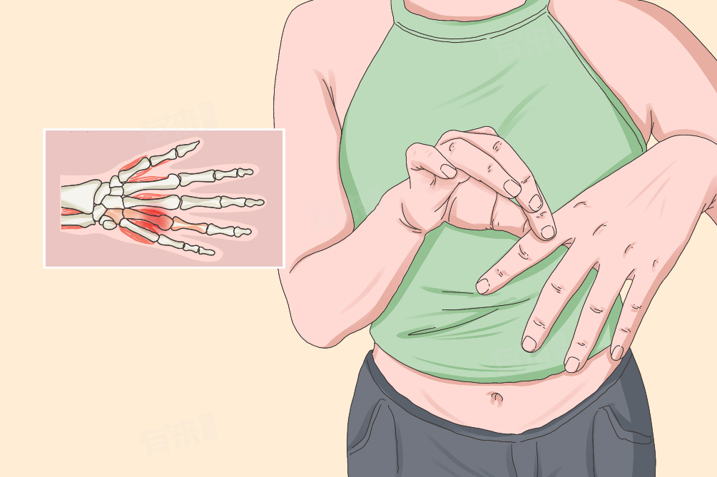 4、好发部位:多发生于手部和腕部,如桡骨茎突狭窄性腱鞘炎,在拇指或手腕活动时疼痛加剧。临床上还有手指屈肌腱鞘炎,常发生在手指掌指关节处,可影响手指的正常屈伸功能。