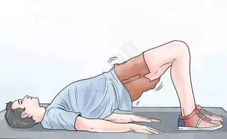 2、仰卧位训练:平躺在地上,小腿垂直地面,双膝屈曲、微分,提起臀部。收缩会阴部肌肉,每次持续约5分钟,然后放松10秒,重复10次。此过程中注意保持呼吸顺畅,不要憋气。