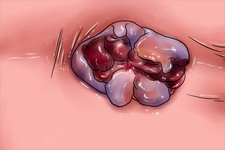 - 外痔的形成与肛门周围静脉曲张有关,长时间久坐、便秘、不良饮食习惯等因素均可诱发。