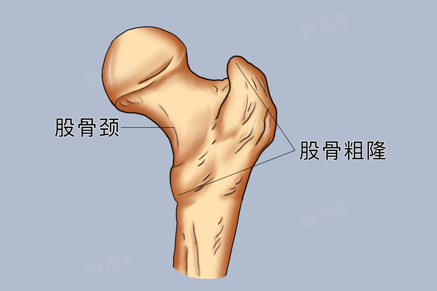 - 股骨颈不仅是连接股骨头与股骨干的桥梁,还是支撑和传递力量的重要结构。人体髋部以上的重量,包括躯干和上肢的重量,都经过股骨颈传导至下肢。因此股骨颈在维持人体直立、行走、跑步等活动中发挥着至关重要的作用。