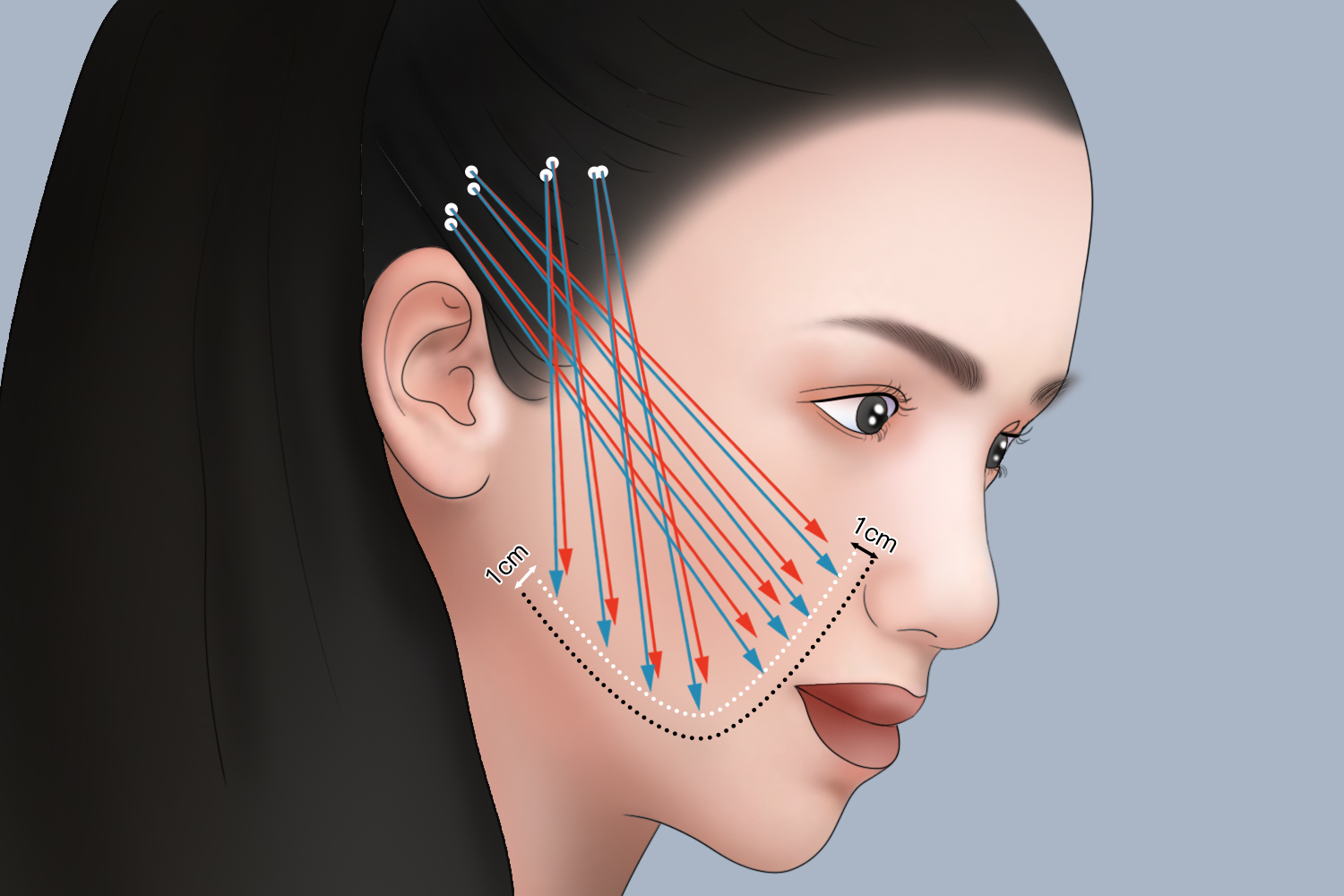 - 通过在皮肤内埋入可吸收的蛋白线,利用线的提拉作用改善面部松弛下垂,同时刺激胶原蛋白再生。线雕的维持时间有限,一般在6个月到2年不等。