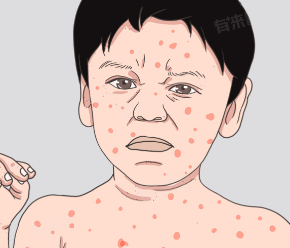 4、风疹:风邪侵袭肌肤,与气血相搏,使肌肤营卫失调,就会出现风疹。风疹表现为皮肤上出现大小不等的风团,瘙痒剧烈,此起彼伏,发无定处。