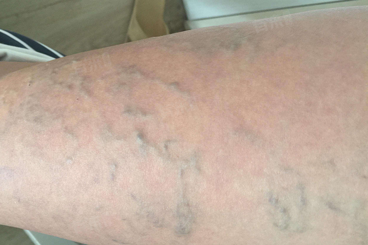3、静脉曲张:静脉曲张是由于静脉瓣膜功能不全或静脉壁薄弱,导致静脉血液回流受阻,静脉内压力增高,进而引起静脉扩张、伸长和迂曲。这一过程使得静脉血管更加突出,颜色也更为鲜明。对于轻度静脉曲张,可通过改善生活习惯(如避免长时间站立或久坐、抬高患肢等)和穿戴医用弹力袜来缓解症状。中重度患者则需考虑手术治疗或介入治疗,以恢复静脉的正常结构和功能。