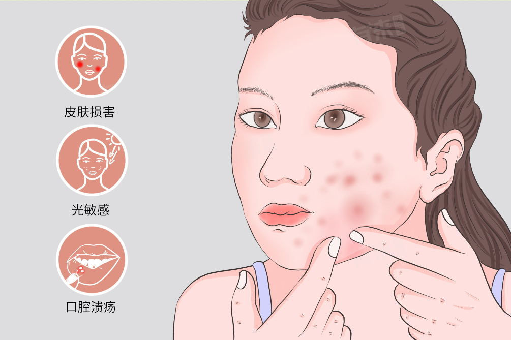- 口腔黏膜等部位会出现红斑糜烂,在病理上,与皮肤类似,也存在角化过度、棘层萎缩、基底细胞液化变性等变化,并且有炎症细胞浸润,黏膜下的小血管会出现扩张、充血的情况。