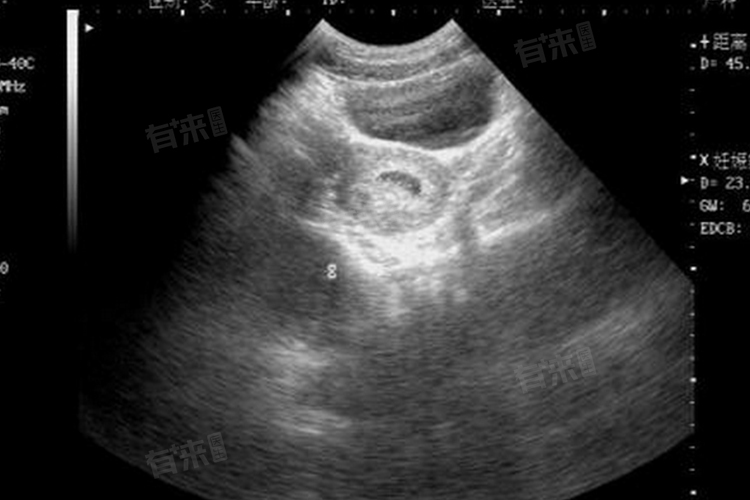 - 如果在怀孕五周时进行经阴道超声检查看到了孕囊,通常孕囊的大小会比较小,可能只有几毫米。此时,孕囊可能呈现为一个圆形或椭圆形的无回声区,位于子宫腔内。