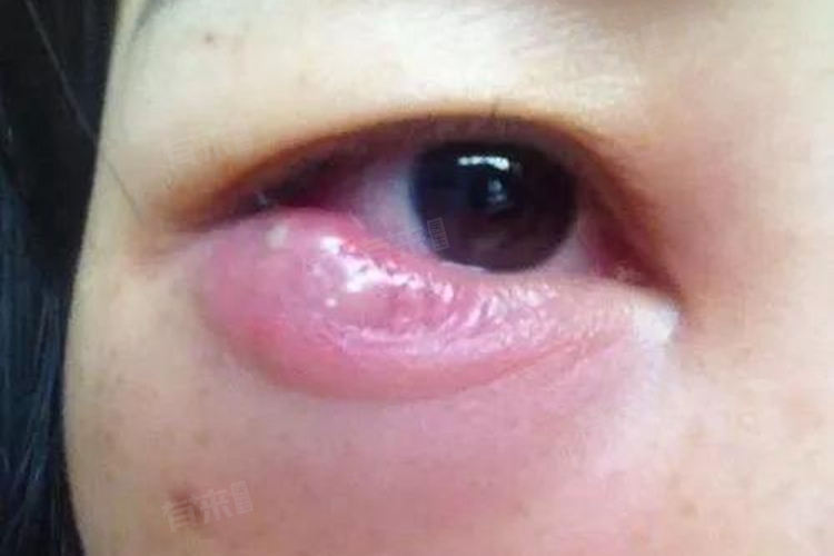 3、麦粒肿:通常是由于葡萄球菌感染引起的睑板腺急性化脓性炎症。初期表现为下眼皮红肿、疼痛,随着病情发展,可形成硬结,后期可能会出现黄白色脓点。