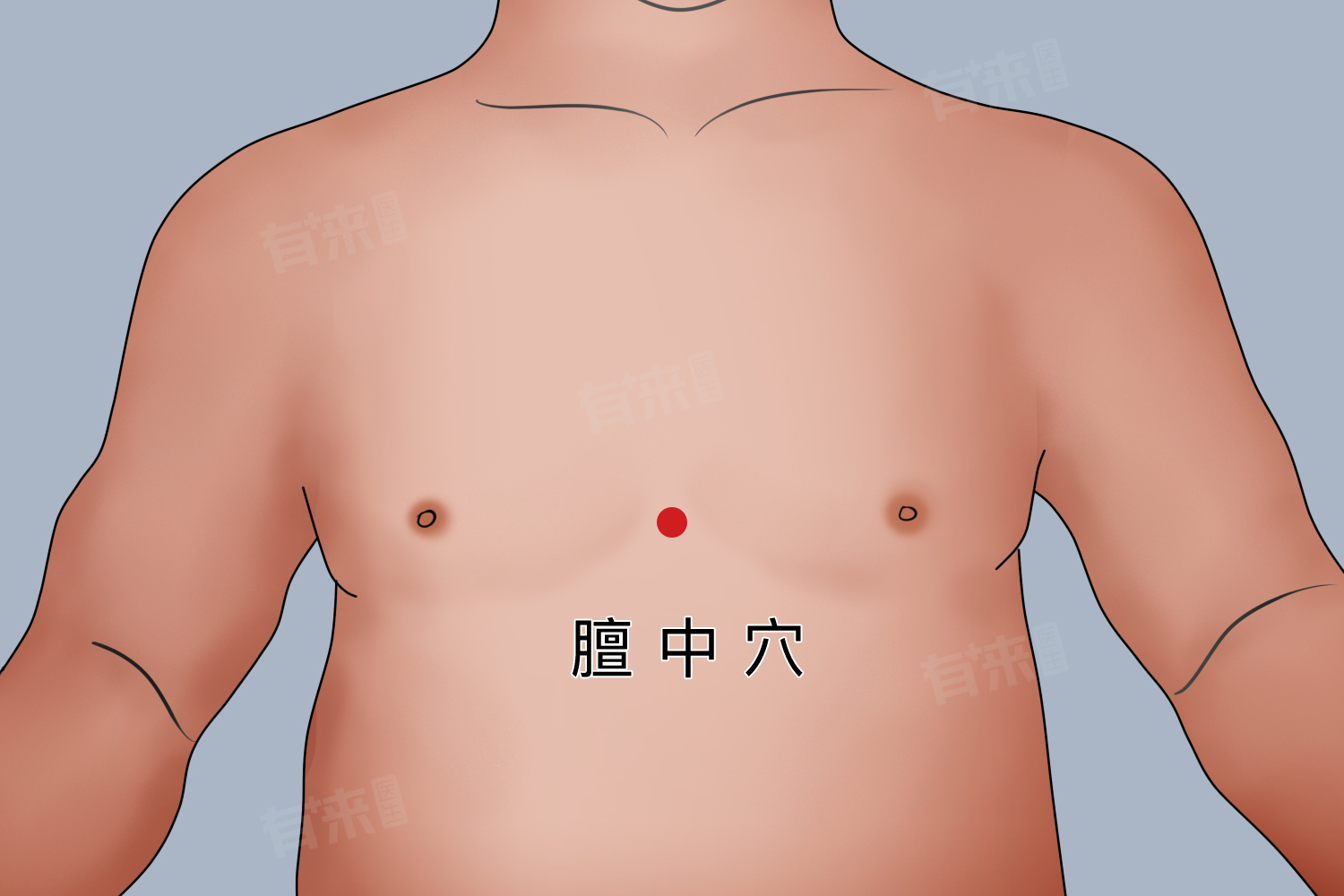 膻中位于人体的胸部正中央,是中医理论中一个重要的穴位,属于任脉,按摩膻中穴具有宽胸理气、止咳平喘、通乳降逆、行气解郁等多种作用与功效。
