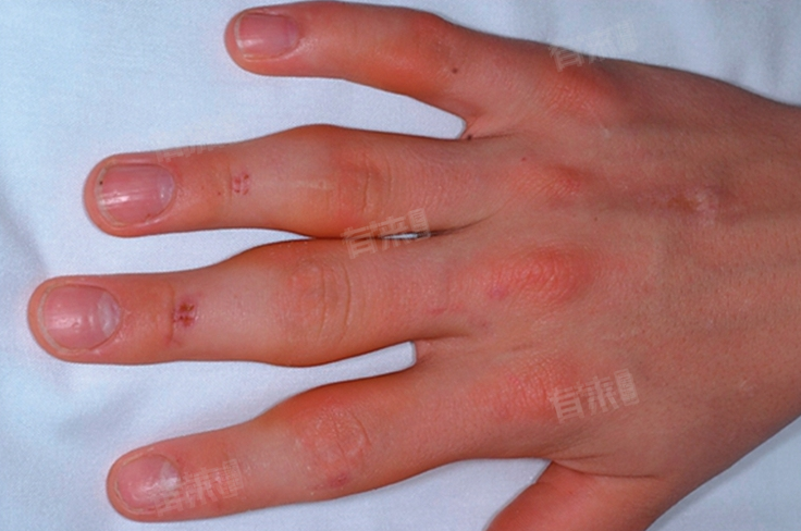 5、类风湿性关节炎:类风湿性关节炎是一种慢性自身免疫性疾病,常表现为手指多发性、对称性疼痛和关节肿胀。在类风湿性关节炎中,手指关节的炎症会导致关节红肿、疼痛,且病情呈波动性进展,严重时可能导致关节变形和功能障碍。