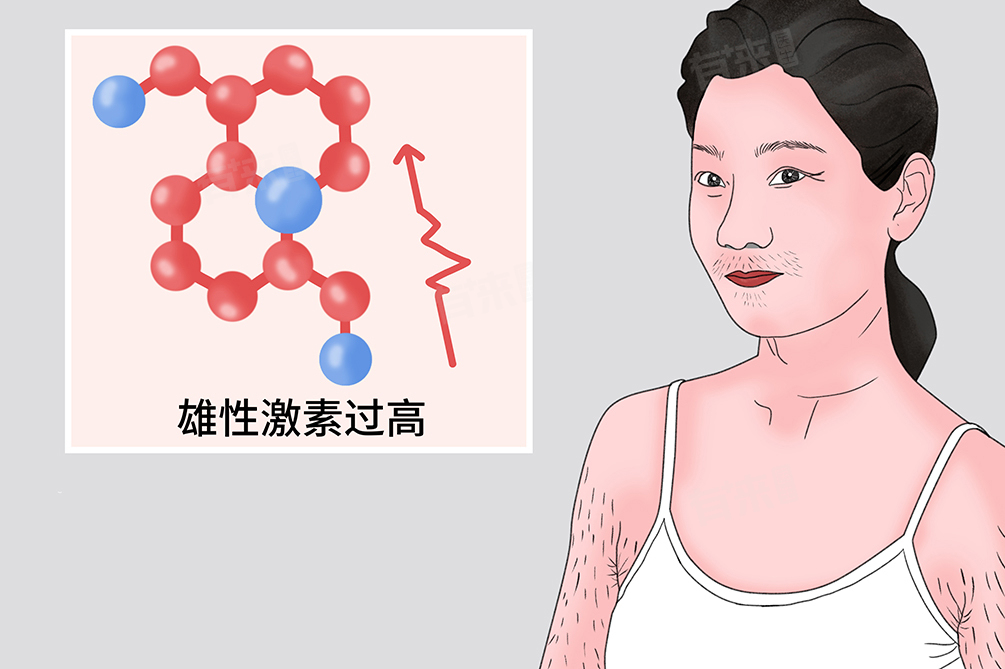 2、多毛症状:除了外貌多毛外,身体毛发会变得浓密。例如乳晕周围、下腹正中线等部位,毛发会增粗、变黑,这是因为雄激素刺激毛囊生长,使毛发的生长速度加快。