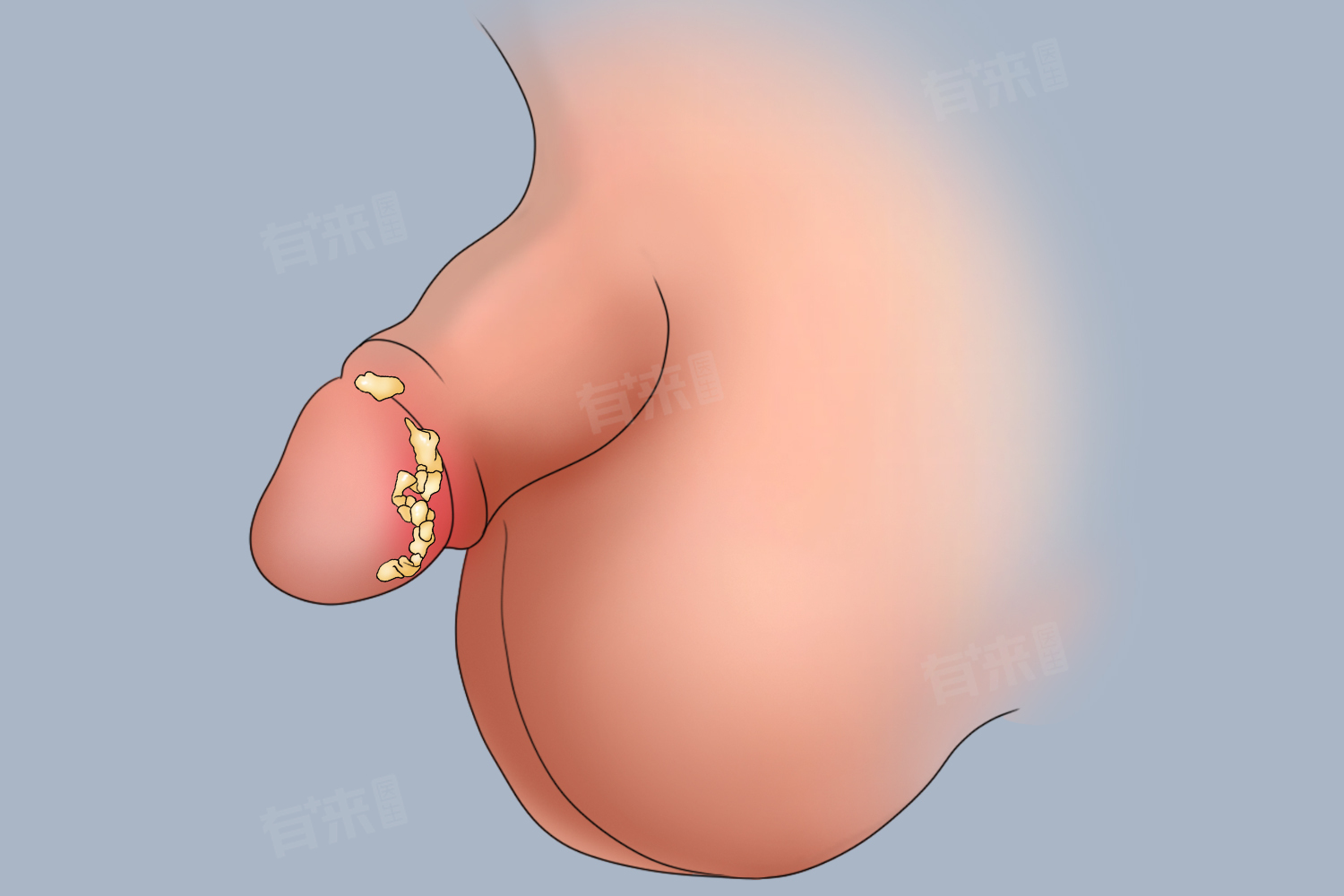 - 白色分泌物长期堆积可破坏包皮龟头黏膜屏障,为细菌、真菌等病原体提供滋生环境。反复感染可导致包皮粘连、龟头溃疡,甚至诱发阴茎癌前病变(如鲍温病)。