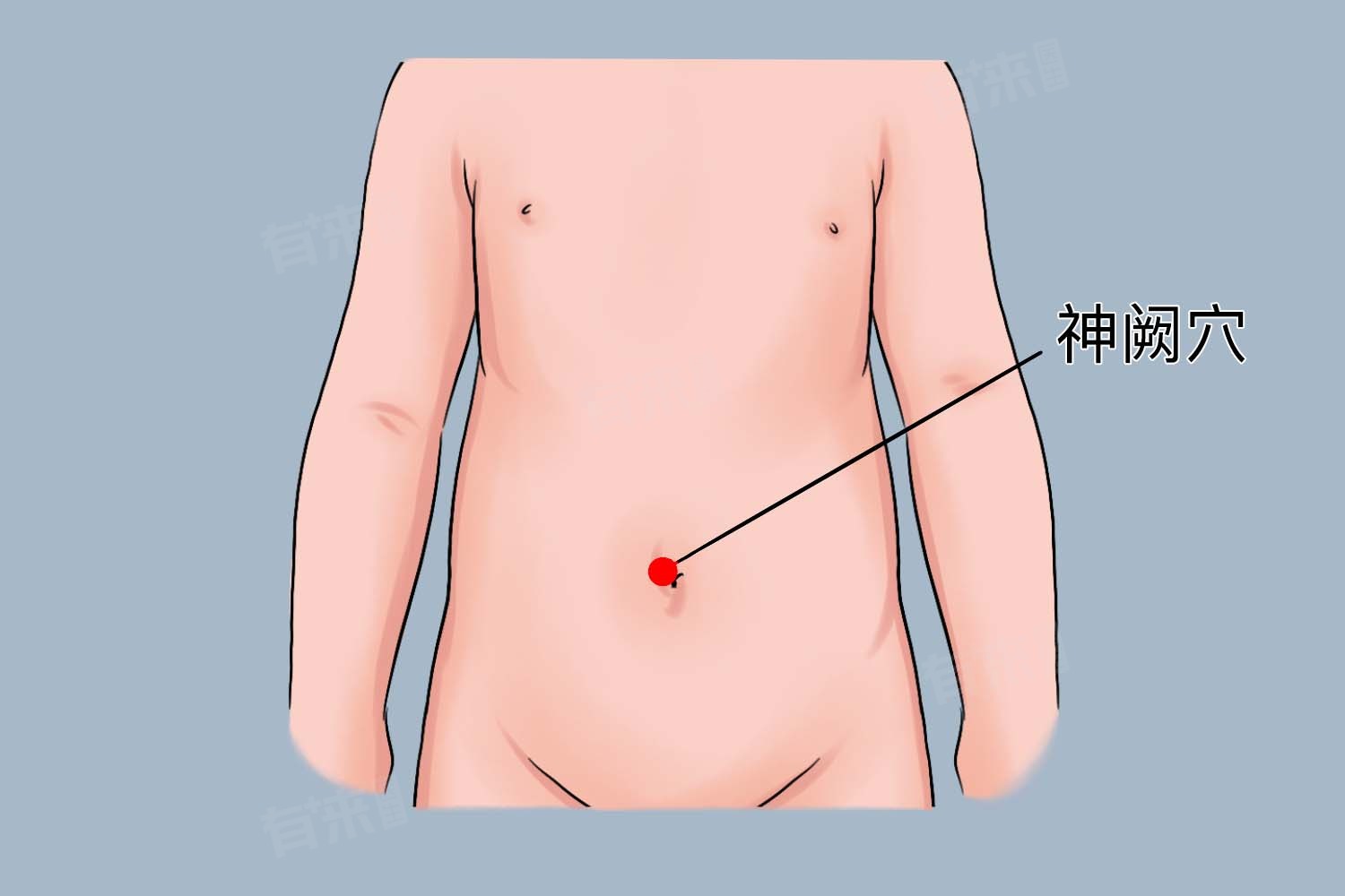 - 和胃理肠:神阙穴可以治疗消化系统疾病,如腹痛、腹泻、便秘等。