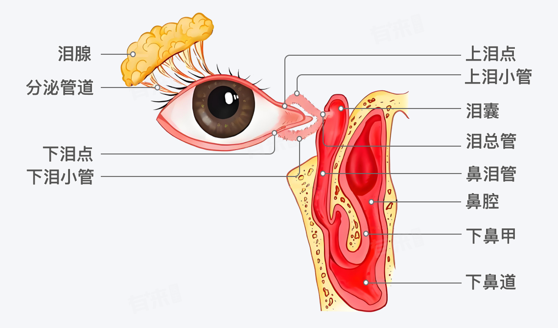 1、泪腺的基础分泌功能:位于眼眶外上方的泪腺通过腺细胞持续分泌基础泪液,经泪腺导管输送至眼表,形成泪膜的水样层,维持眼表湿润。基础泪液含溶菌酶、免疫球蛋白等,兼具清洁与免疫防御功能。