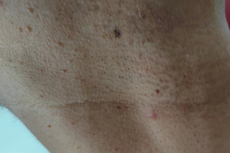 5、软组织纤维瘤:可能与病毒感染、先天性遗传、肥胖、糖尿病等因素有关,高甘油三酯血症的患者中出现皮赘的几率较高。常伴随丝状肿物、息肉样肿物等症状,表现为皮肤上凸起的小肉丁,尤其是多发性皱纹状小丘疹多见于颈部,且质地较软。通常不需要进行治疗,但如果影响个人审美,可以在医生的指导下通过手术切除、激光、冷冻、电灼等方法进行治疗。