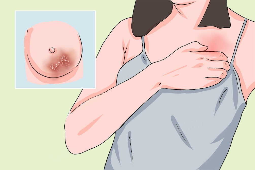 3、乳房湿疹:长期处于潮湿环境中可能诱发湿疹,导致乳房局部出现红疹、丘疹、瘙痒等症状。保持乳房干燥清洁,避免长时间处于潮湿环境。如症状严重,可在医生指导下使用糖皮质激素类药膏等进行治疗。