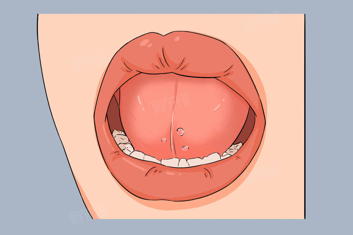 2、口腔尖锐湿疣:这是一种由人乳头瘤病毒(HPV)感染引起的性传播疾病,可发生在口腔黏膜。当口腔接触到含有HPV的体液,如通过口交等行为,病毒会侵入口腔上皮细胞。病毒在细胞内复制,刺激上皮细胞异常增生和分化,导致舌头表面出现菜花状的疣体。初期疣体可能较小,随着病情发展,会逐渐增大、增多,形态类似菜花,表面粗糙,颜色可呈淡红色、灰白色或污灰色。