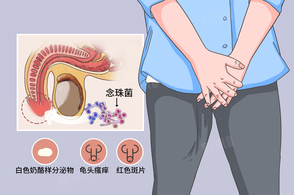 男性念珠菌感染在泌尿系统较为常见,多由白色念珠菌引发,其症状主要包括包皮症状、阴茎龟头症状、尿道症状等。