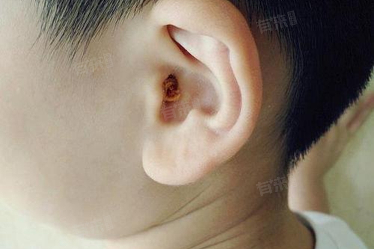 2、耵聍栓塞:婴儿耳朵分泌较多的耵聍形成黄色的结痂,通常无明显不适,但结痂过多可能影响听力或造成耳道堵塞。使用碳酸氢钠溶液浸泡,软化耵聍后,用负压吸引器吸出。若耵聍较硬或较深,建议到医院由医生处理,以免损伤耳道。