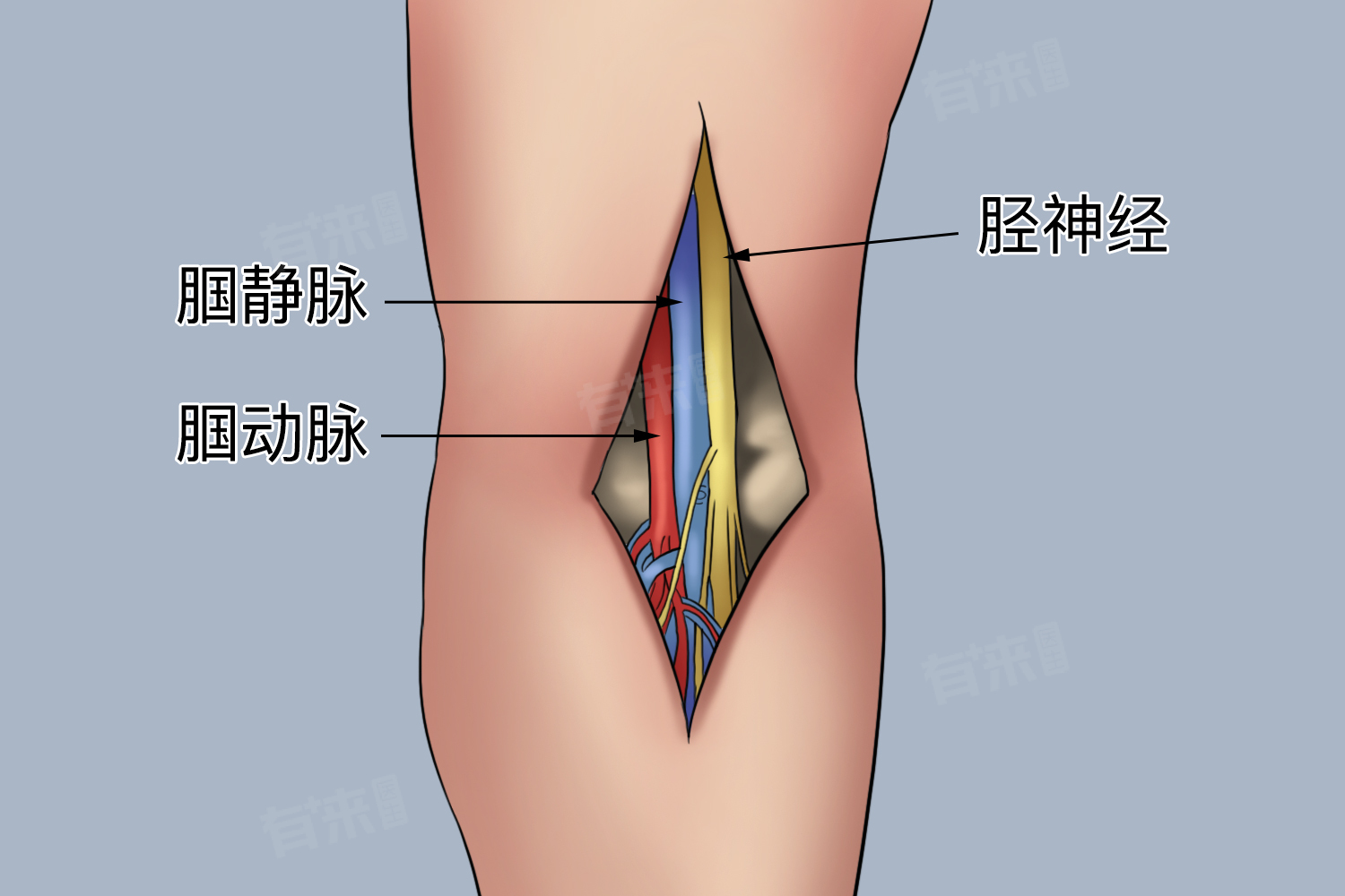 - 腘静脉起始于腘窝处,向上穿过股后肌群,最终汇入股静脉,属于下肢深静脉系统中的关键分支,对于下肢的静脉回流起着重要作用。