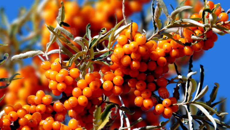 沙棘有丰富的营养成分和多样的功效,具体包括健脾消食、止咳祛痰、活血化瘀等。