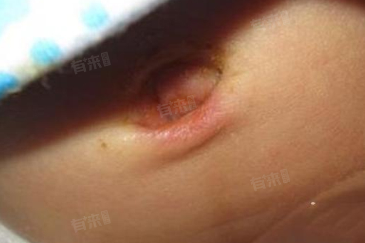 4、脐炎:是较为常见的原因,通常是由于细菌感染引起,可能是在宝宝脐带未脱落时护理不当或者肚脐部位被水浸湿后未及时处理引起。细菌侵入肚脐周围的皮肤,引发炎症,表现为红肿、疼痛,甚至有脓性分泌物。