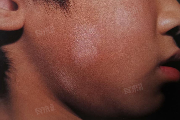 3、白癜风:是一种由于黑色素细胞脱失导致的皮肤疾病,发病原因可能与遗传、自身免疫、精神因素、外伤等有关。典型症状为皮肤出现边界清楚的白色斑块,白斑内毛发也可能变白,白斑可发生于身体任何部位,包括面部,且一般无疼痛、瘙痒等不适症状,但可能会随时间逐渐扩大或增多。