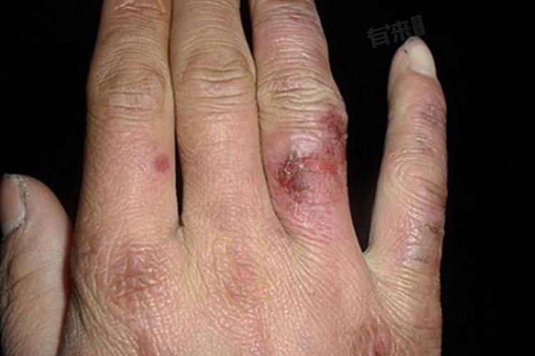 4、水疱与溃疡:在冻疮的严重阶段,受损部位可能会出现水疱。这些水疱通常很小,但也可能在严重的情况下变得更大,并充满淡黄色或清亮的液体。若水疱破裂,且未得到及时正确的处理,就容易引发感染,进而形成溃疡。溃疡表面可能有脓性分泌物,愈合后可能留下疤痕。