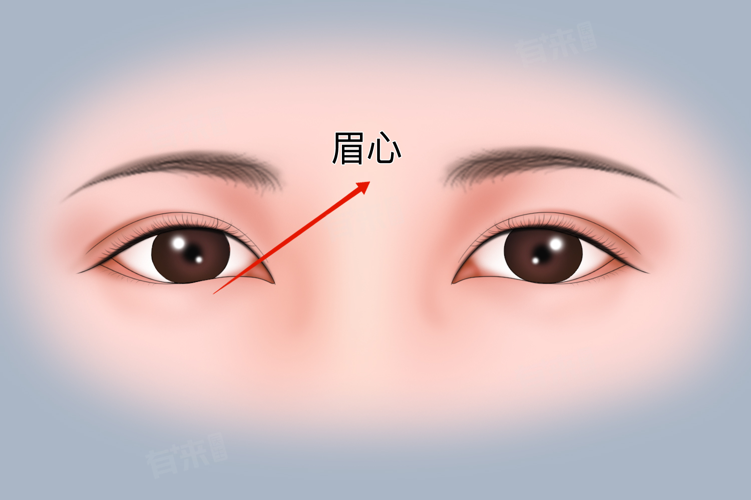眉心的位置在面部,处于左右两侧眉毛的中间,也就是两眉之间的区域。具体来说,当正视前方时,将目光聚焦在自己的眉毛上,可以看到左右眉毛相对应的位置,眉心就在这两条眉毛内侧边缘的正中间。这个位置相对比较容易确定,是面部一个较为明显的标志点。