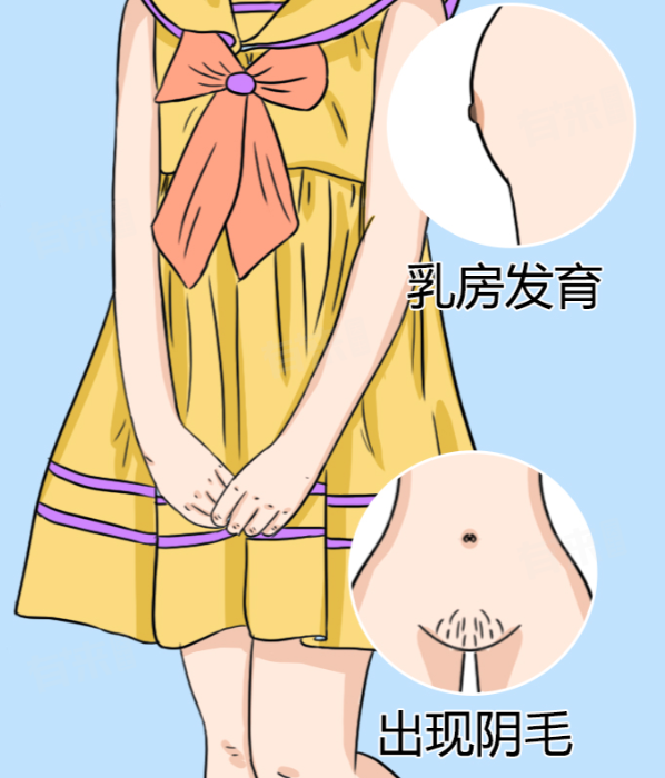 2、毛发提前生长:8岁左右甚至更早,若女生发现阴毛、腋毛开始生长,这打破正常生长节奏,属于早熟表现,易让女生感到困惑。