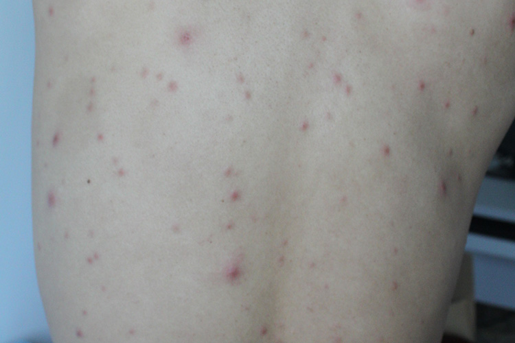 1、梅毒疹:梅毒疹通常表现为红斑、丘疹、结节、脓疱或溃疡等,但常以一种类型皮损为主。颜色可表现为红色、淡红色、黄红色,也可表现为绿豆至黄豆大小、铜红色。皮损通常缺乏特异性,可能出现在身体的多个部位,如躯干、四肢、手掌、足底等,多为全身性对称分布,形态多样。梅毒疹主要出现在梅毒的二期,此时梅毒螺旋体已在体内广泛播散。