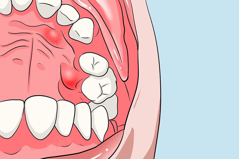 3、口腔溃疡:口腔溃疡是一种常见的口腔黏膜疾病,可能在上颚部位形成圆形或椭圆形的溃疡,并伴有疼痛、烧灼感等症状。初期,溃疡点可能表现为红点,随后逐渐发展为明显的溃疡面。口腔溃疡的原因多种多样,包括饮食、免疫、遗传等因素。