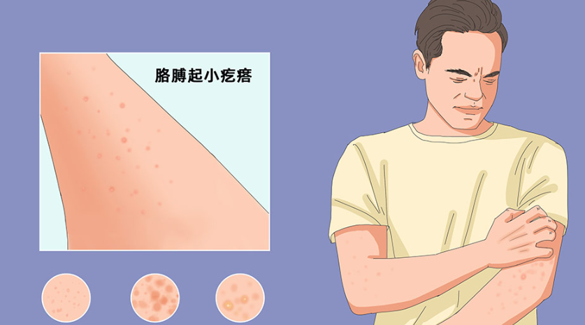 2、湿疹:湿疹引起的小疙瘩多伴有瘙痒、红斑、渗出等。应避免搔抓,保持皮肤清洁干燥。患者可在医生指导下于局部涂抹糖皮质激素软膏,也可口服抗组胺药,可有效减轻不适。