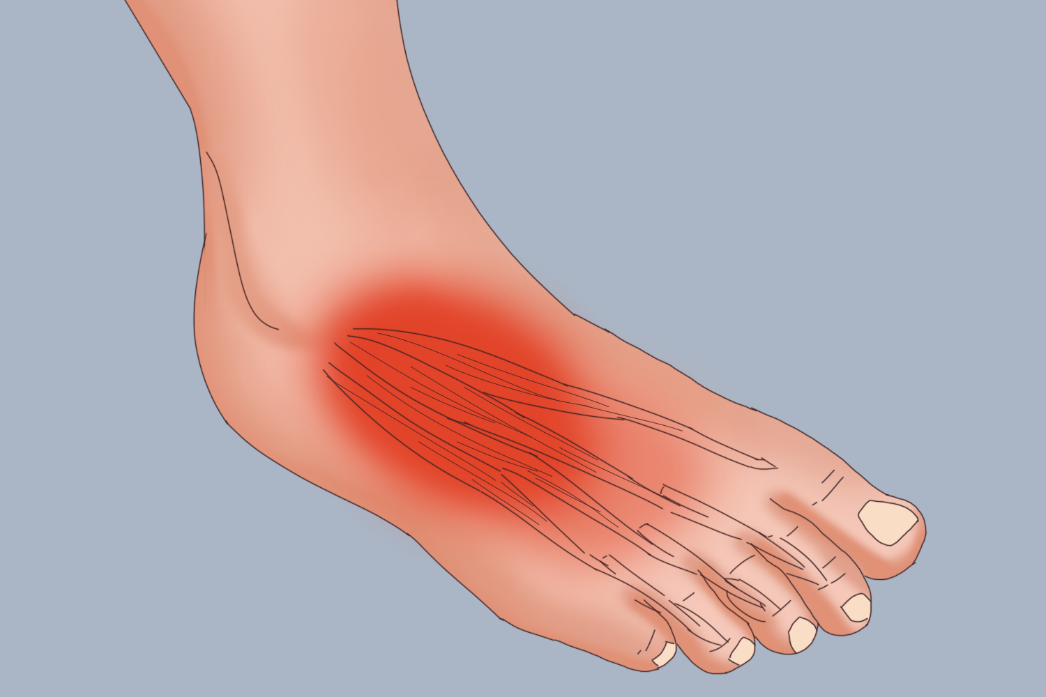 1. 肌肉或肌腱紧张:长时间站立、行走或运动后,脚背的肌肉和肌腱可能因过度使用而紧张,引起疼痛。