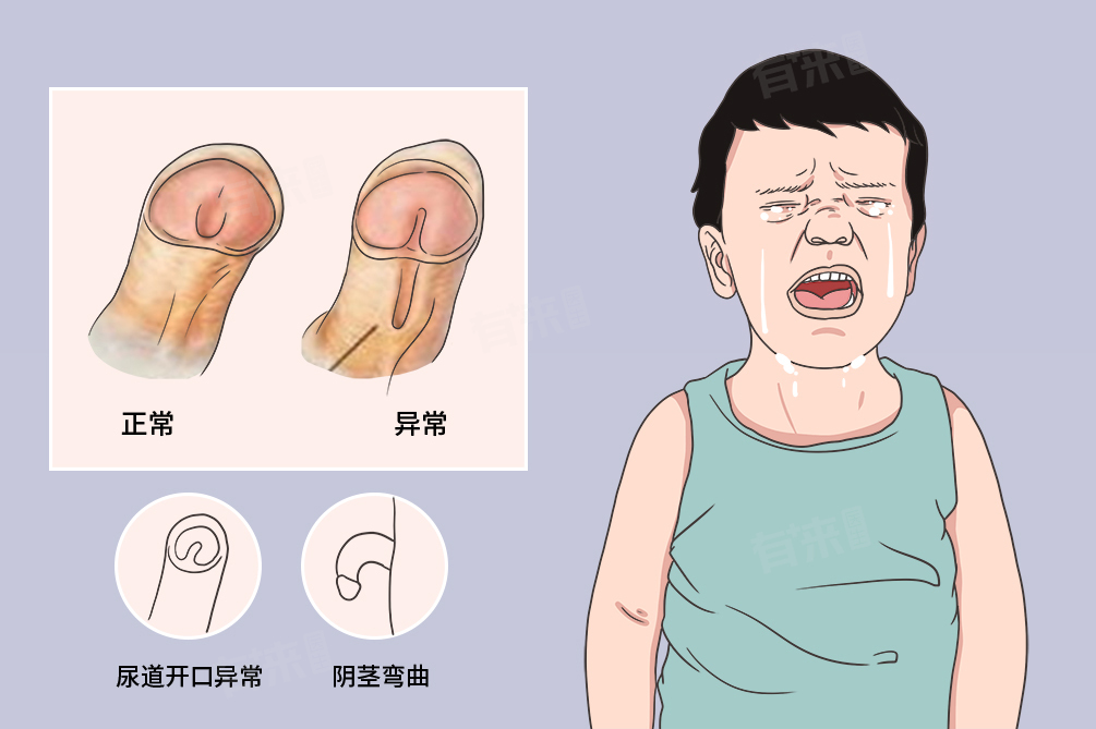 2、生殖器形态异常:尿道下裂可能导致阴茎的形态受到影响,呈现曲折或弯曲状,阴茎头扁平,阴茎体短小,阴茎头与阴茎体之间有缺损。此外,尿道下裂还可能伴有包皮异常,如包皮较窄或不完全包住阴茎头部,包皮与龟头不能正常粘连等。这些形态上的异常不仅影响患者的外观,还可能对性功能造成障碍,如勃起功能问题、早泄等。