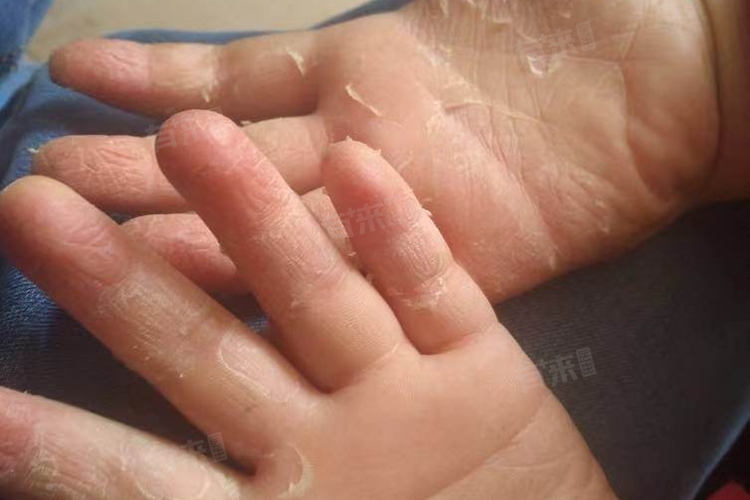 2、环境刺激:长期接触水、化学物质(如洗涤剂、溶剂)或机械摩擦(如手工劳动)可能诱发或加重剥脱性角质松解症。这些刺激会破坏皮肤屏障,导致角质层脱落。避免接触刺激性物质,减少手部与水接触的频率。工作时可佩戴防护手套,并使用温和的清洁剂。局部可涂抹凡士林或保湿霜,保护皮肤。