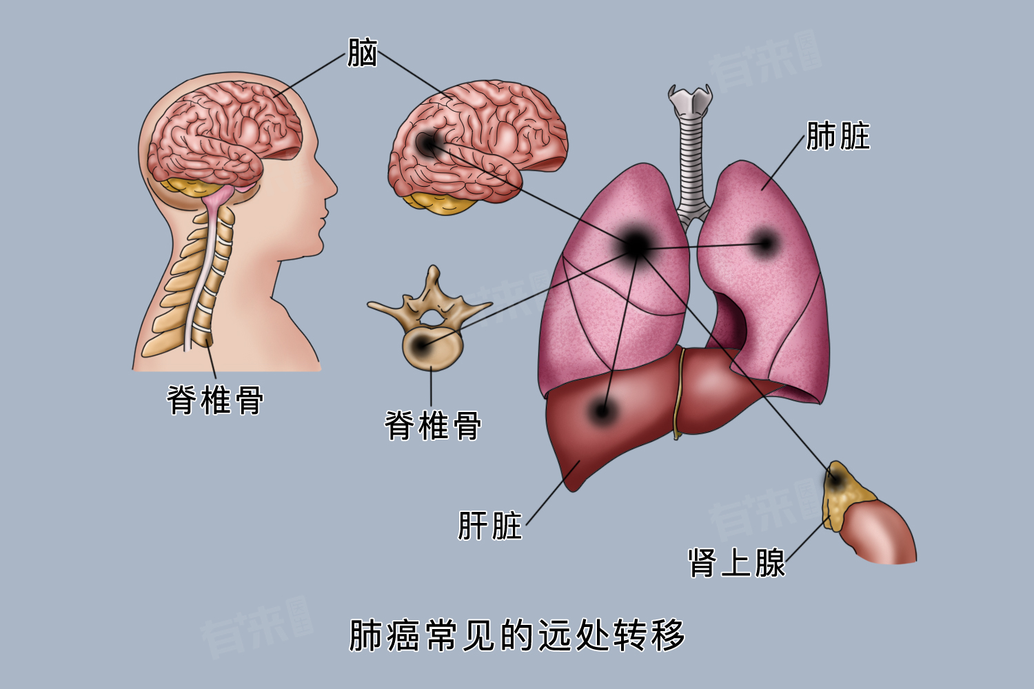 肺癌转移到颅脑、心包、脊髓、肝脏、骨骼等部位均可能产生严重后果,但从临床角度来看,颅脑转移和肝脏转移往往预示着更差的预后。