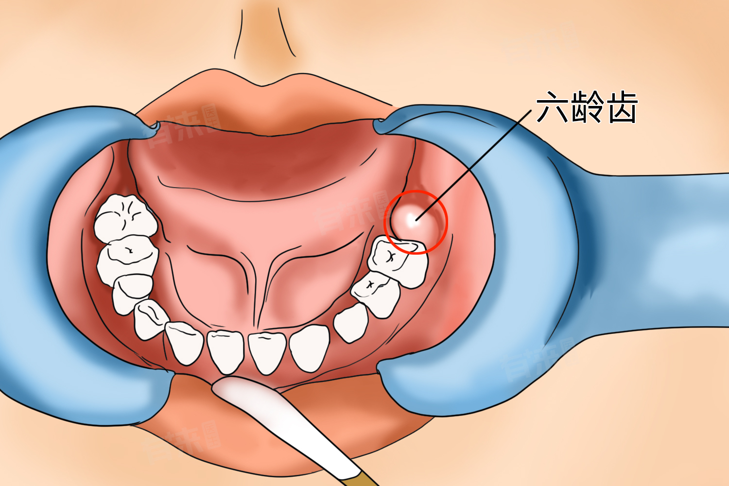 1、正常换牙现象:六龄齿是儿童在6岁左右于乳牙列最后方萌出的恒牙,直接在牙龈上长出,不替换任何乳牙,这颗牙在咀嚼、维持牙弓形态及恒牙列正常排列方面意义重大。萌出时家长应注意观察其萌出位置与方向是否正常,一般无需特殊干预。