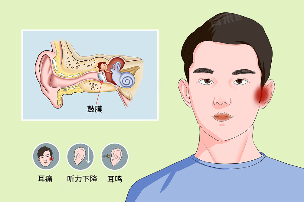 1、耳痛:鼓膜破裂初期,患者通常会感到耳部疼痛,这种疼痛程度因人而异,可能是轻微的刺痛,也可能是较为剧烈的疼痛。疼痛产生的原因主要是鼓膜的完整性受到破坏,耳部的神经末梢受到刺激。
