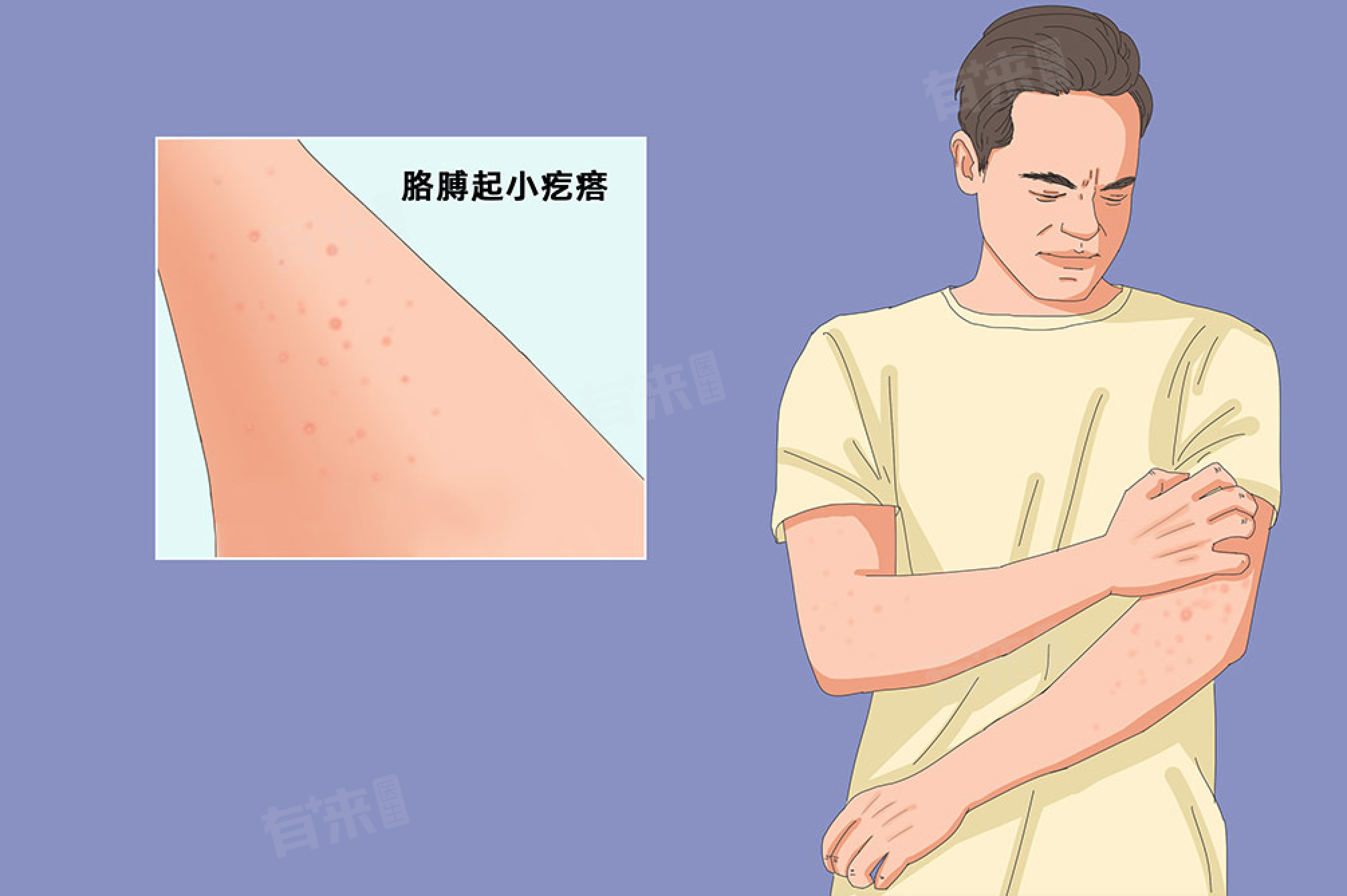 1、毛囊炎:外伤、细菌感染等因素导致毛囊发炎,形成硬结,在医生指导下涂抹抗生素药物进行治疗。
