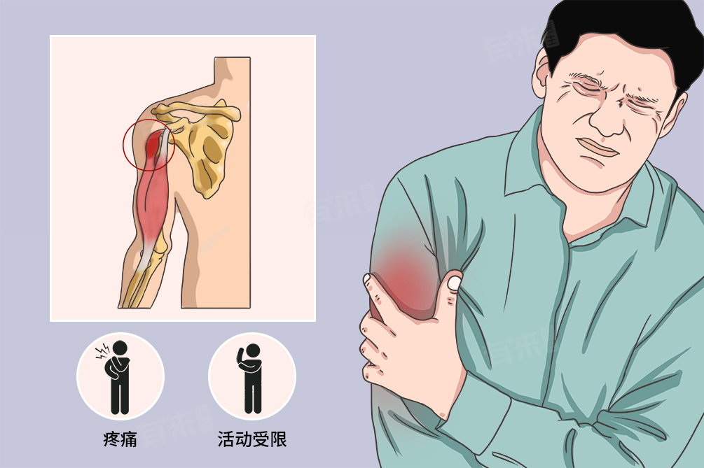- 休息与制动:限制关节剧烈活动,禁止负重抬东西搬东西活动,避免过度使用肩肘关节,可以用三角巾进行悬吊,使肱二头肌得到充分休息。