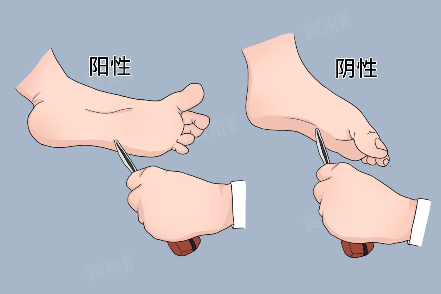 - 巴氏征阳性是神经系统检查中的一项重要体征,通过特定的刺激方式观察患者的足趾反应来判断。患者平躺在硬板床上,检查者使用竹签或叩诊锤的尖端,从患者的脚心外缘由后向前划,再划到内侧。正常情况下,所有足趾会呈现屈曲状态(即向下弯曲)。若出现大拇指向后背伸(即向上抬起),而其他四指呈扇形散开的情况,则被视为巴氏征阳性。
