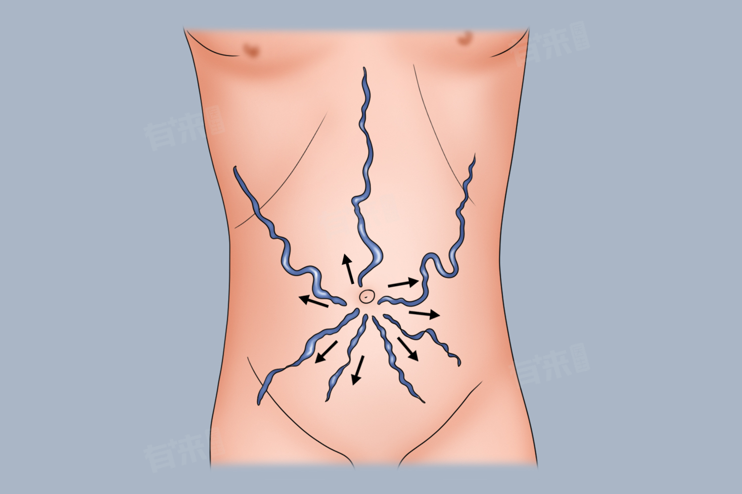 - 腹部可见扭曲、隆起的静脉血管,可能伴有疼痛、酸胀等不适感,严重时可能出现腹水、消化功能减退等症状。