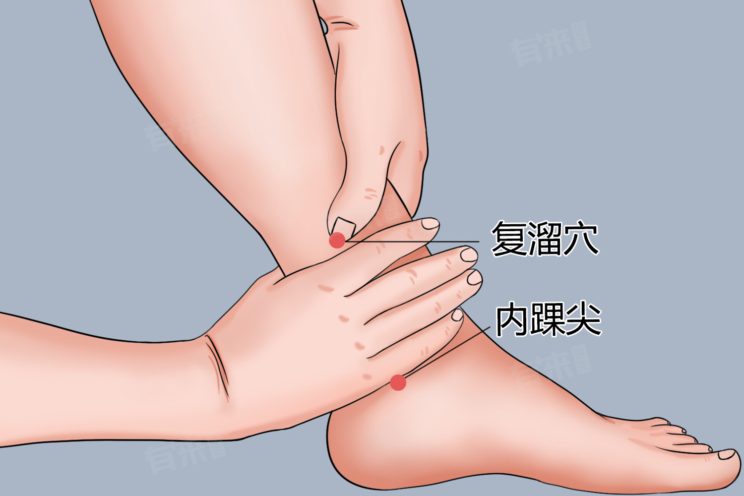 2、清热利水:复溜穴位于小腿内侧,与肾经相连,能够调节水液代谢,清热利水。对于水肿、小便不利等症状,通过刺激复溜穴可以有效改善。复溜穴是中医治疗水肿的主要穴位之一。