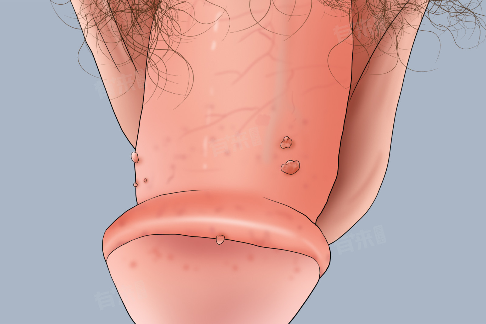 1、生殖器疙瘩:最常见的HPV感染临床表现是生殖器疣,它们通常是肉色或灰色的小疙瘩,单个或成簇出现在生殖器、肛门周围或会阴区,这些疣有时可能呈现菜花状,在性接触后容易出血或感染。