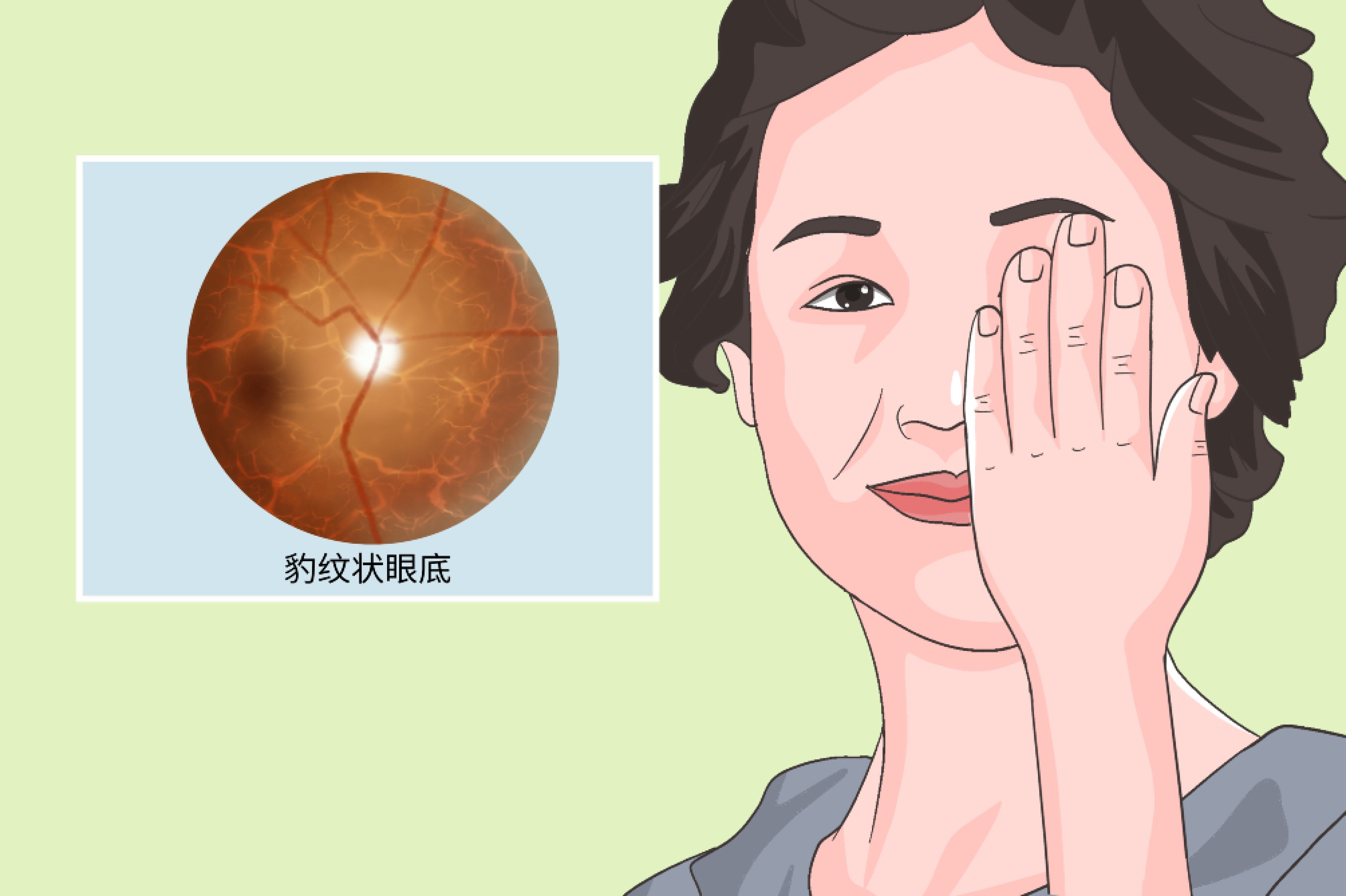 2、高度近视:高度近视患者的眼球会扩张,导致视网膜变薄、萎缩,进而出现豹纹状眼底,是豹纹状眼底最典型的表现之一。