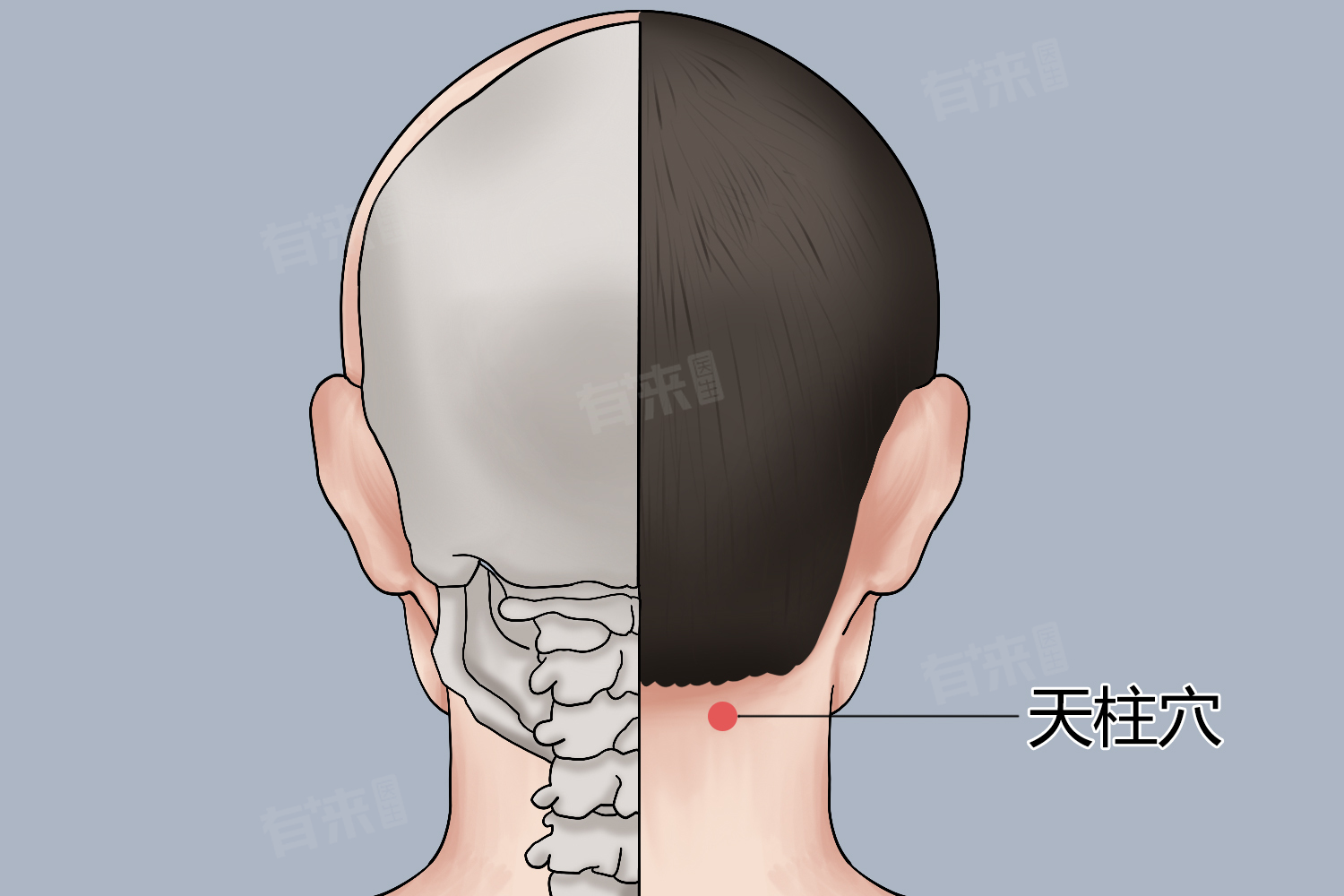 位于颈部,后发际正中旁开约两横指宽,斜方肌外缘凹陷处。用双手拇指或中指指腹按压天柱穴,能够舒缓颈部肌肉紧张,缓解颈椎病引起的不适感。