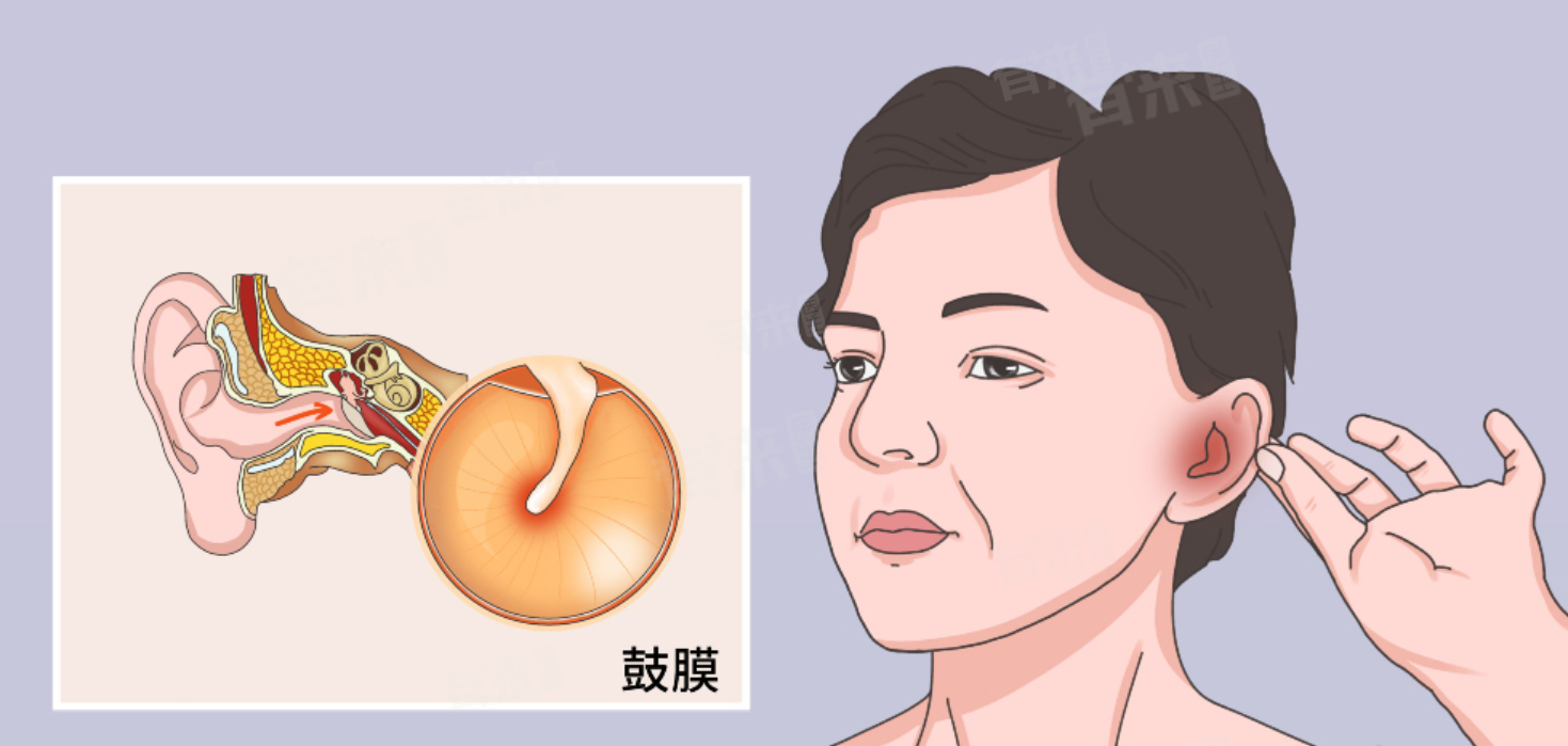 - 如果发生急性中耳炎等耳部感染严重时,也可能会引起中耳腔内脓液积聚,压力升高,导致耳膜破裂,通常伴随着剧烈的耳痛、听力下降等症状。