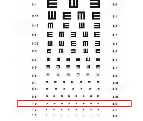 - 视力5.0是使用标准视力表进行测试时得到的结果。在测试中,受试者需要站在一定距离(通常是5米)外,识别视力表上的字符或符号。如果受试者能够清晰地看到5.0这一行或更好的视力行,那么他们的视力就被认为是正常的,即视力5.0。