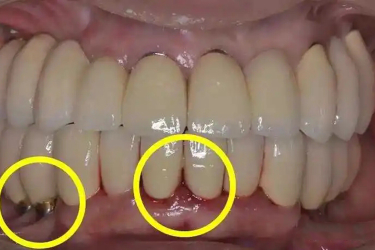 - 长时间使用后,烤瓷牙的材料可能会出现老化或微小的裂缝,这不仅影响美观,也可能导致细菌侵入,引起周围组织的炎症或变色。