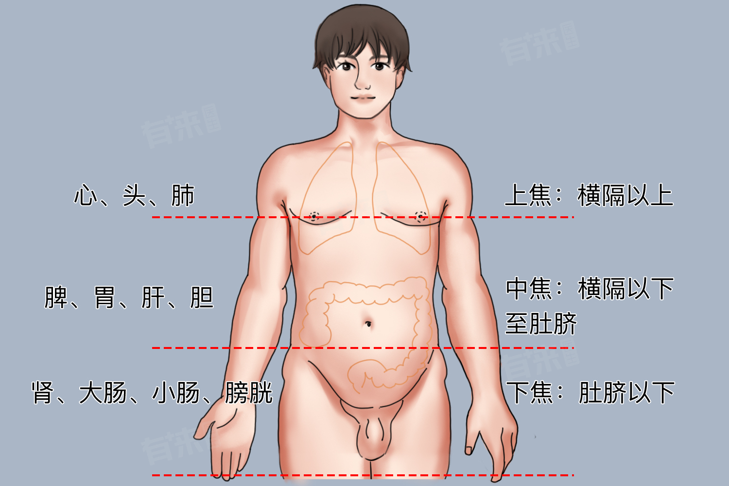- 中焦涵盖脾胃。中焦不通,脾胃运化功能失常,可出现食欲不振、腹胀、腹痛、消化不良、恶心、呕吐等症状。长期中焦不畅还可能引发胃炎、胃溃疡、十二指肠溃疡、肠炎等消化系统疾病。