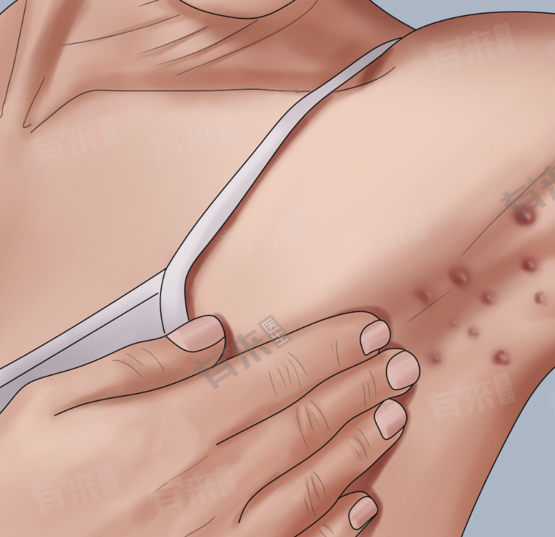 3、软纤维瘤:软纤维瘤是一种皮肤良性肿瘤,常见于中老年人,可能与皮肤老化、摩擦等因素有关,在腋下表现为针头至绿豆大小的柔软赘生物,通常有蒂,颜色多为肤色或淡褐色,对于体积较大或影响美观的软纤维瘤,可考虑激光、冷冻或手术切除等方法治疗。
